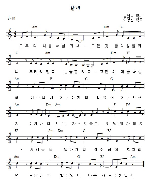 * 송현숙 작사, 이영빈 작곡 *